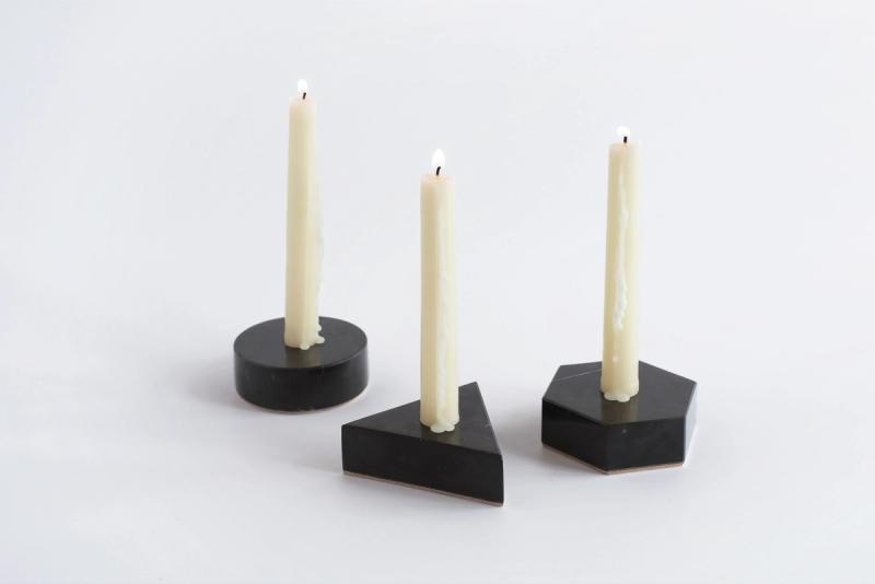 MARBLE CANDLE HOLDER - BLACK